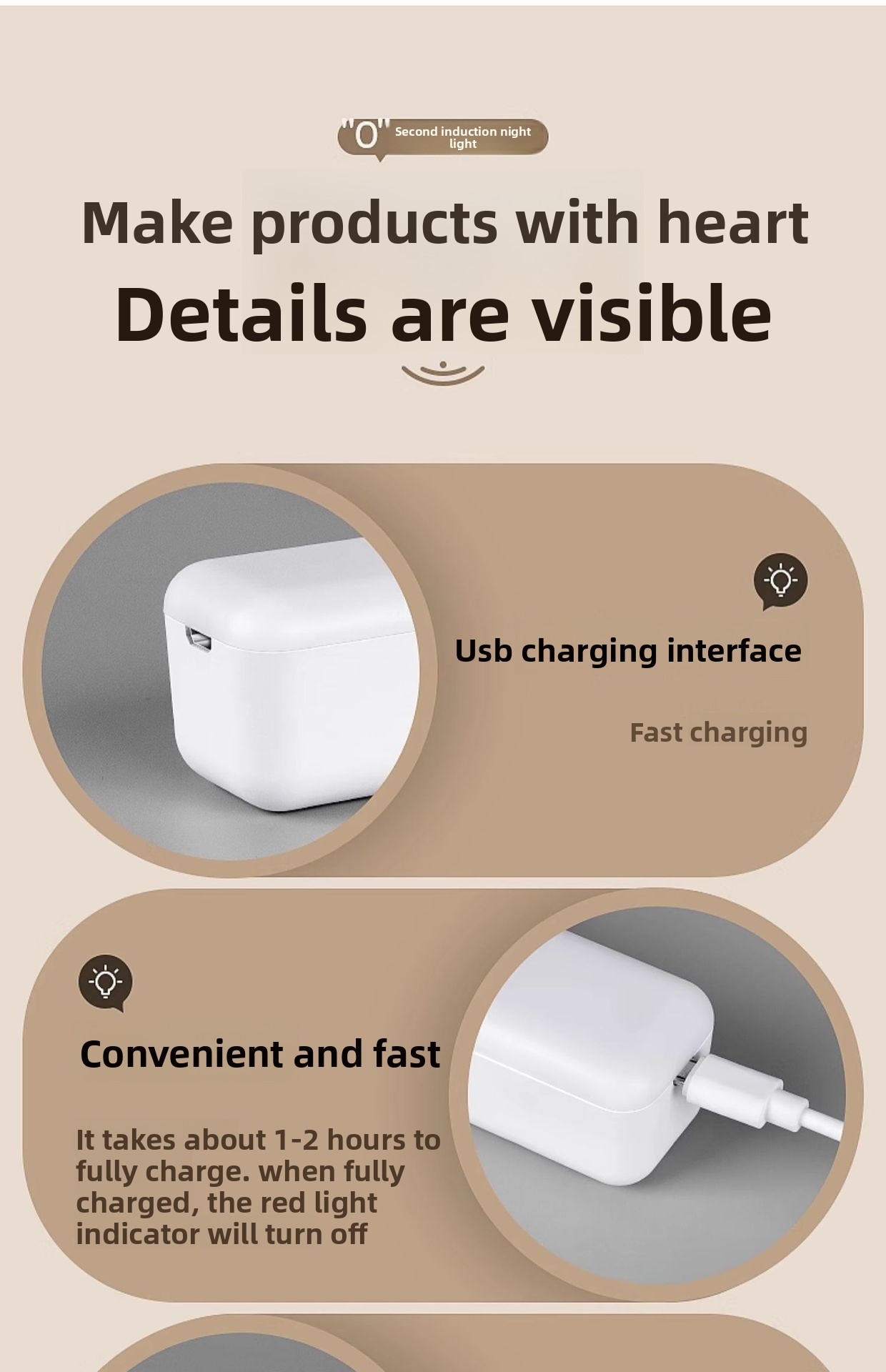 Say goodbye to disposable batteries and complicated wiring. This wireless night light includes innovative magnetic charging technology that makes installation and recharging incredibly simple. The magnetic base allows you to easily detach the light unit for charging via the included USB cable, then snap it back into place within seconds. No electrician needed, no outlets required at the installation point.